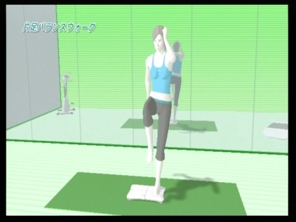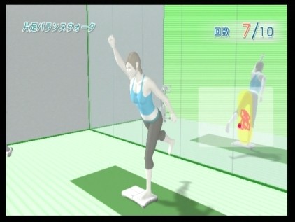バランスWiiボードの上で、左足を上げて片足立ちする
